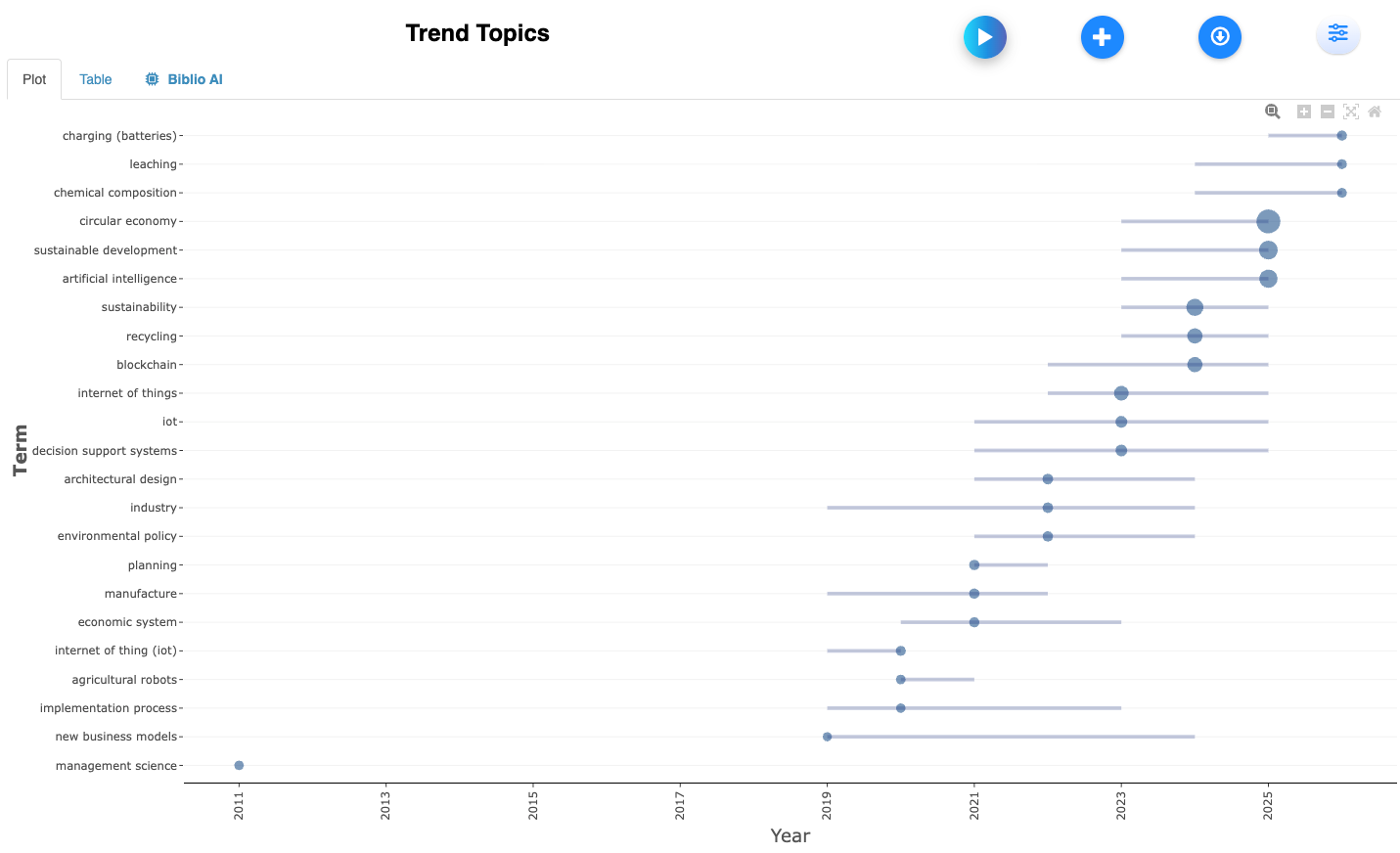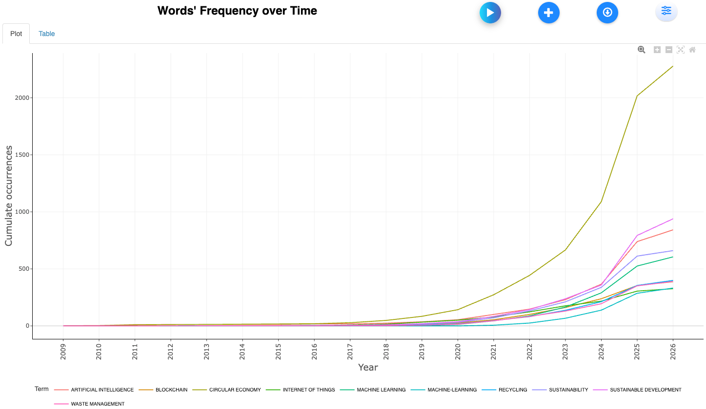 Query on Scopus: “Circular economy” AND {“Cloud Computing” or “crypto” or “internet of thing” or “artificial intelligence” or “virtual reality” or “augmented reality”.
