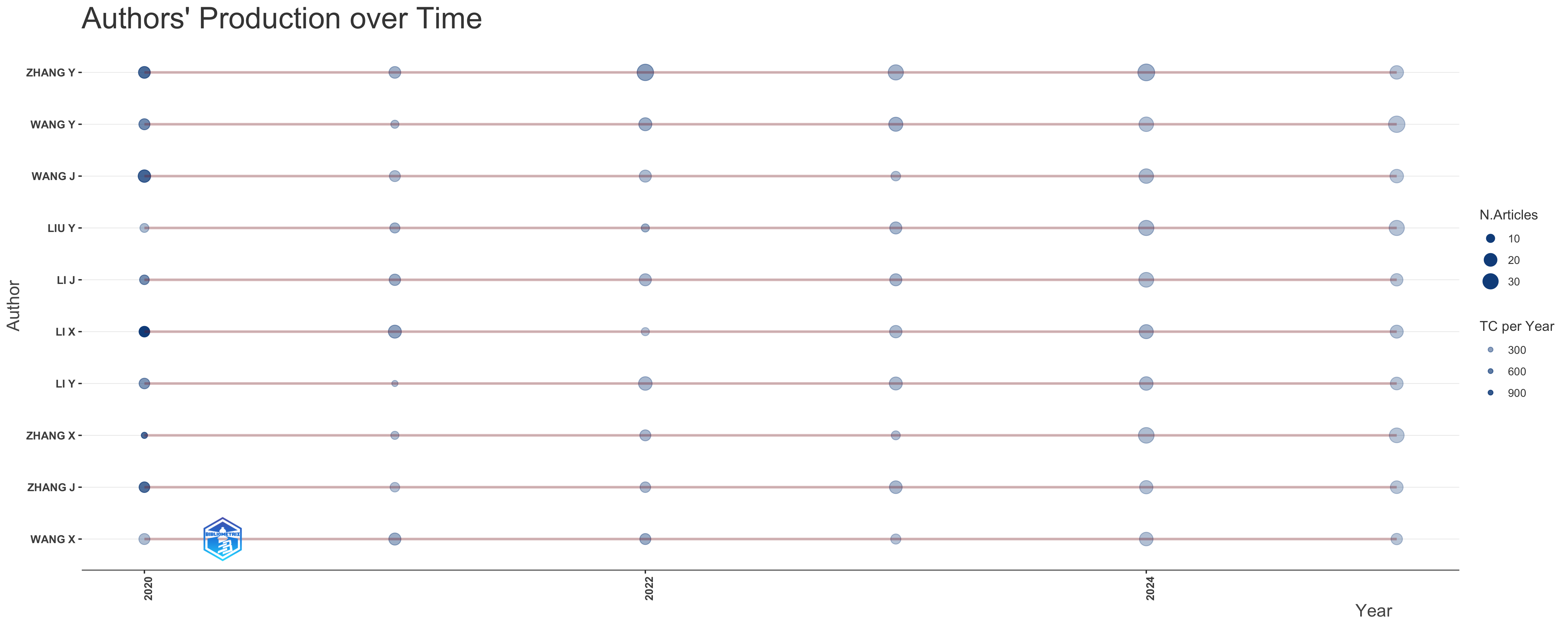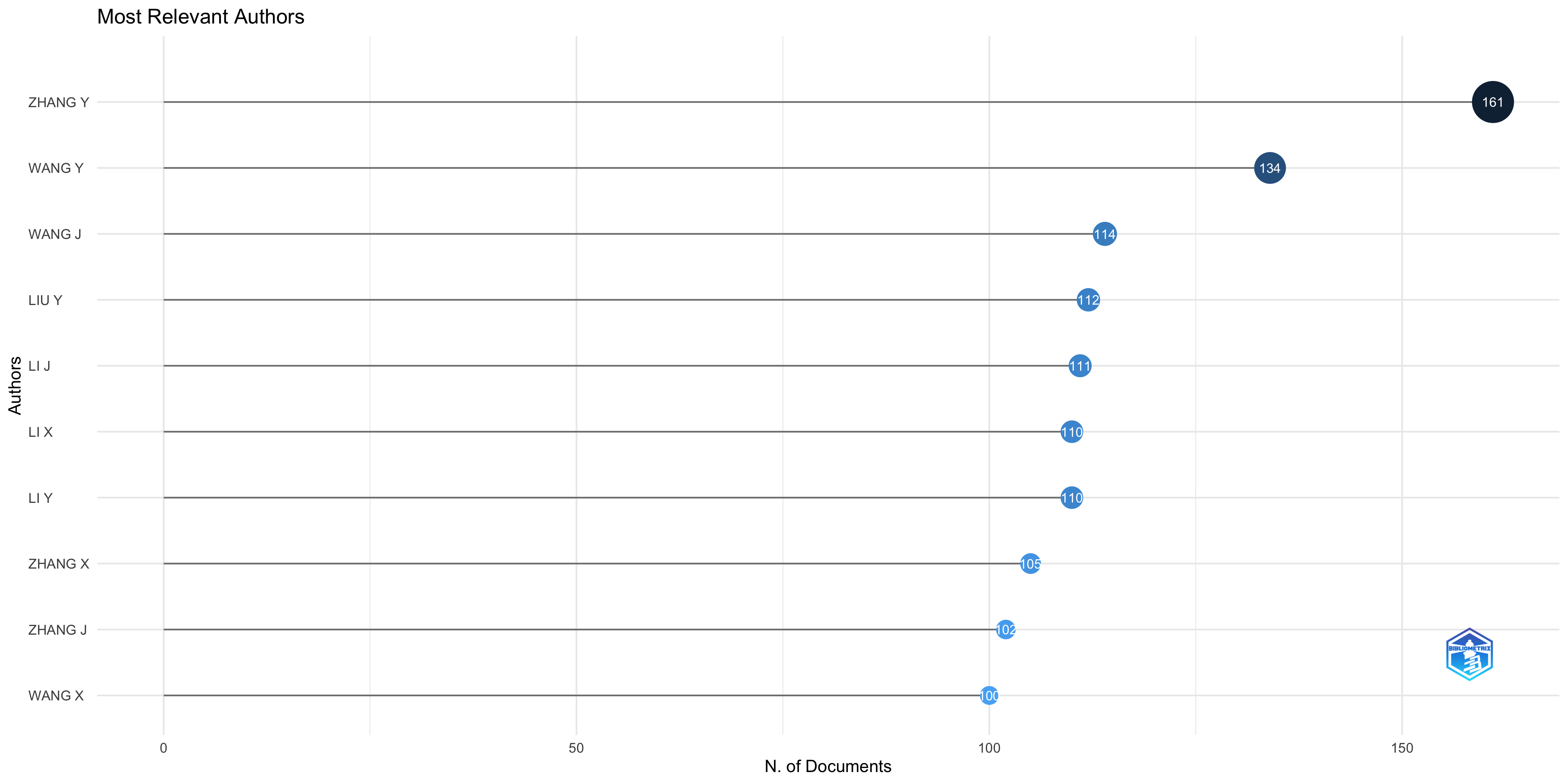 1. Author Centrality: Authors with the most connections will appear higher in the central “AU” column, indicating greater activity or influence within the research area represented by the collection.