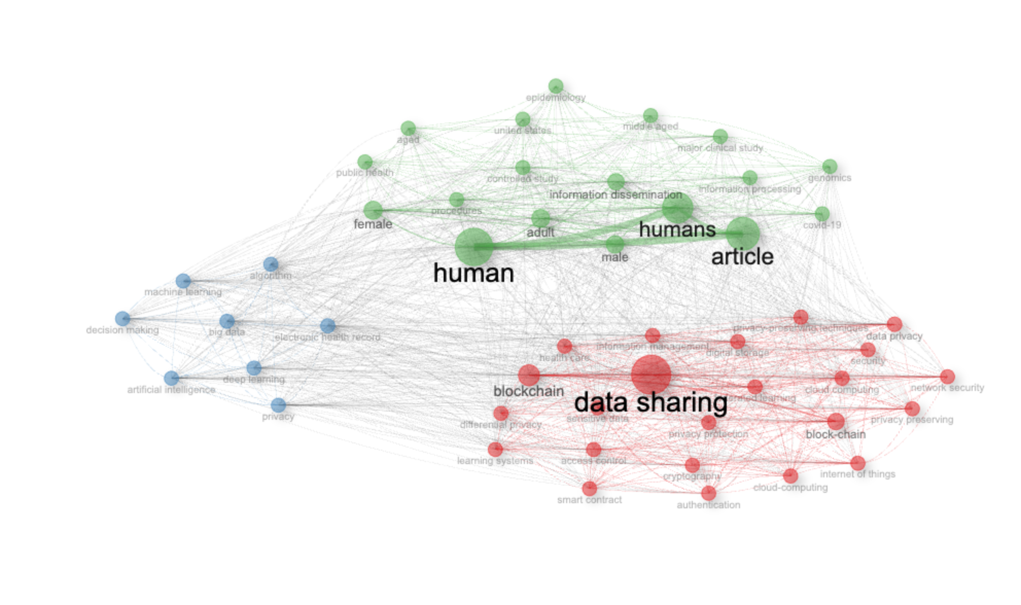 2. Citation Analysis: Explore the citation patterns between clusters. Are there significant citations from the “Human” cluster to the “Privacy” cluster (or vice-versa)? This can reveal how these themes influence each other.