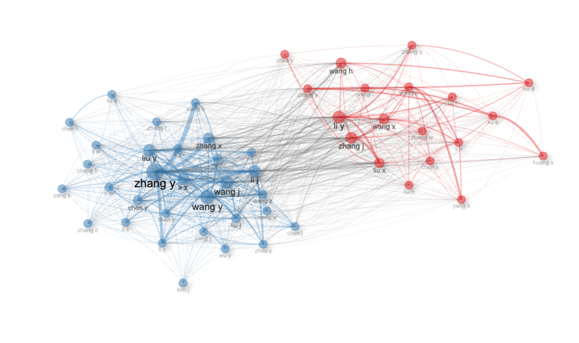 * Within the Blue Community: `zhang y`, `liu y`, `wang y`, `wang j`, `zhang x`