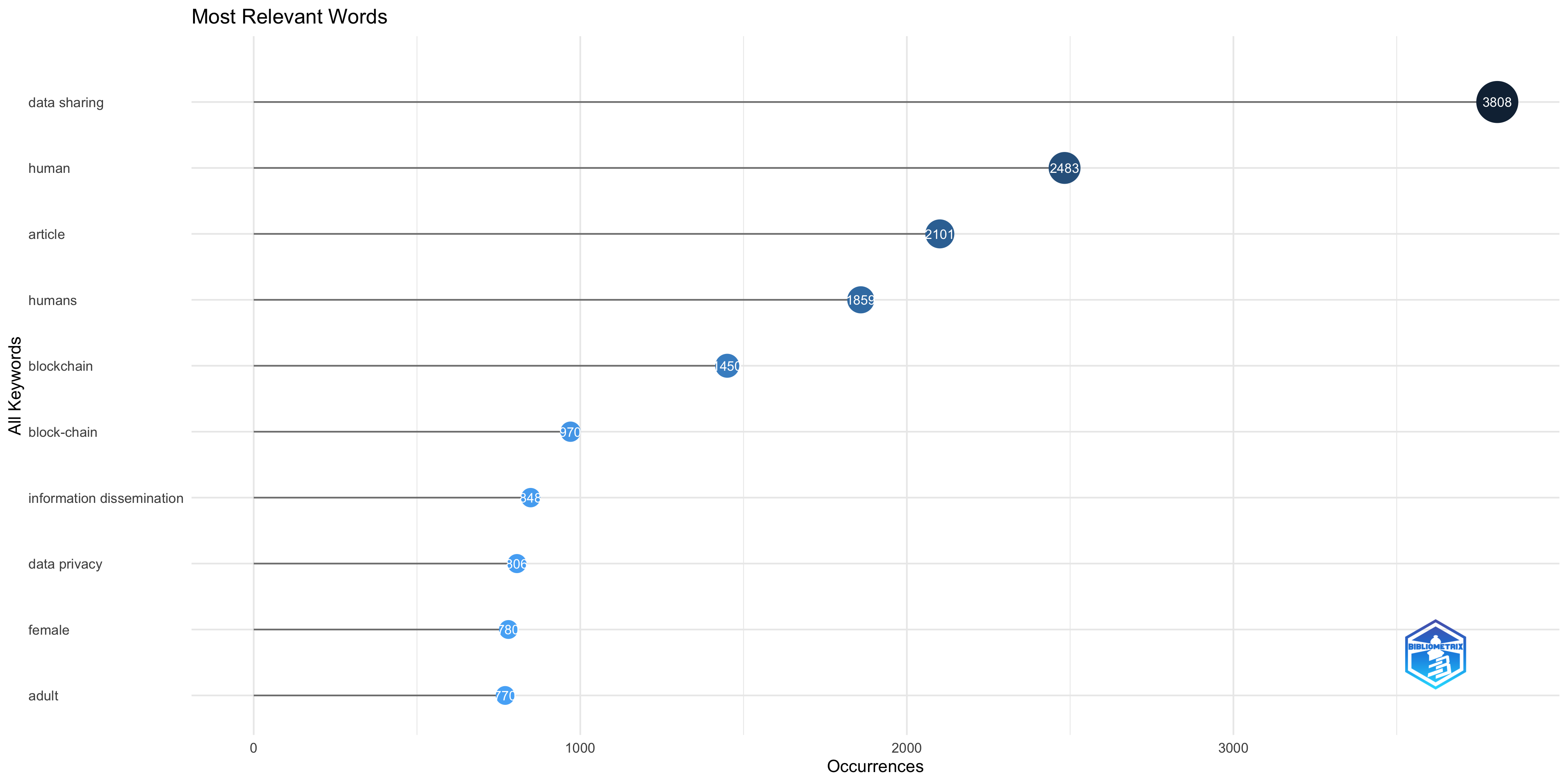 * Interpretation: This theme has a high degree of internal development (“blockchain,” “block-chain”), suggesting a well-defined and actively researched area. However, its lower centrality indicates that it is less connected to the other main themes in your network. This might represent a specialized field with strong internal development but potentially limited influence on the broader research landscape represented by your data. It could also represent an emerging theme if it is on the lower side.
