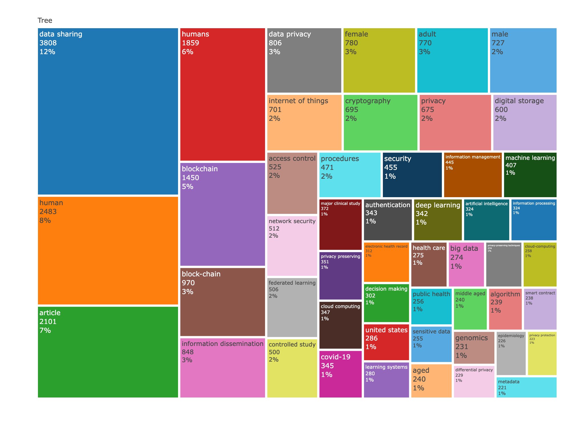 * Further Investigation: Is “data sharing” related to a specific application area (e.g., genomics, imaging)? Is the blockchain application specific or broadly applicable? Explore potential reasons for its lower centrality. Are there barriers preventing this theme from connecting more strongly to other areas? Is it a genuinely novel approach that needs more time to integrate?